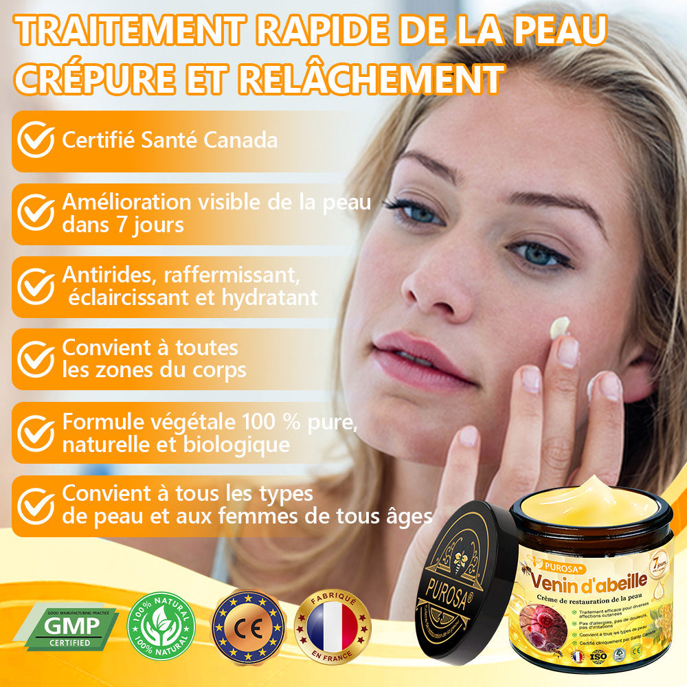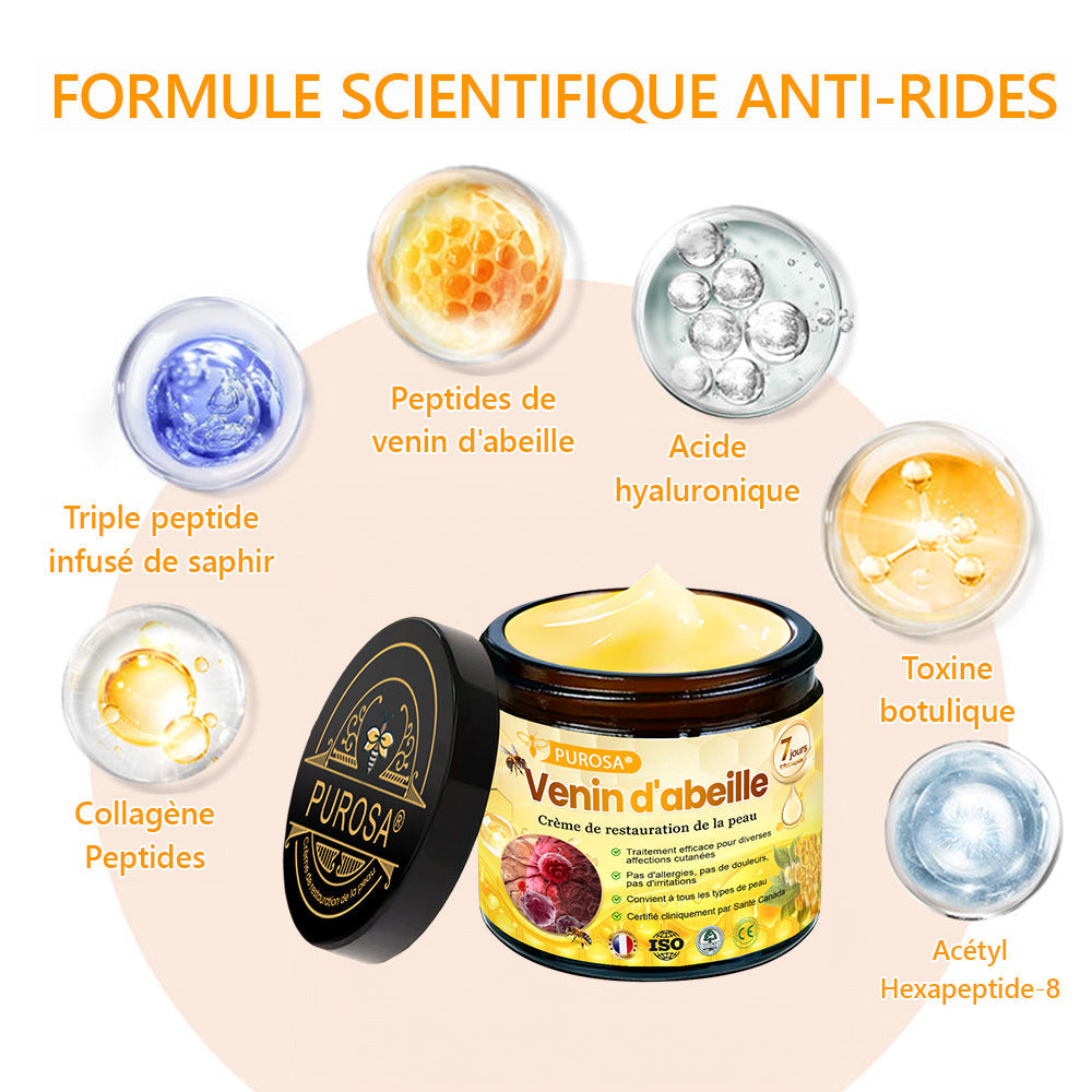 PUROSA® Venin d'abeille Crème de restauration de la peau cible tous les problèmes liés au relâchement de la peau, aux rides, et bien plus encore !