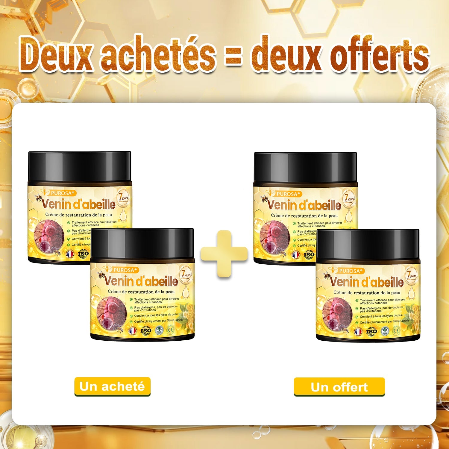 PUROSA® Venin d'abeille Crème de restauration de la peau, développée par des chercheurs dermatologiques de pointe en collaboration avec des instituts suisses spécialisés en anti-âge, combine un complexe de peptides de venin d’abeille à des agents raffermissants dérivés de la toxine botulique pour lisser visiblement les rides, raffermir la peau relâchée et restaurer son élasticité.Appuyée par plus de dix ans de tests cliniques et validée dermatologiquement, cette crème tout-en-un cible autant les ridules que les rides profondes, tout en renforçant la barrière cutanée et en apaisant l’inflammation. Fabriquée dans une installation enregistrée auprès de Santé Canada et conforme aux normes canadiennes de sécurité cosmétique, PUROSA® propose une solution luxueuse et scientifique pour une peau visiblement plus jeune et plus résistante.